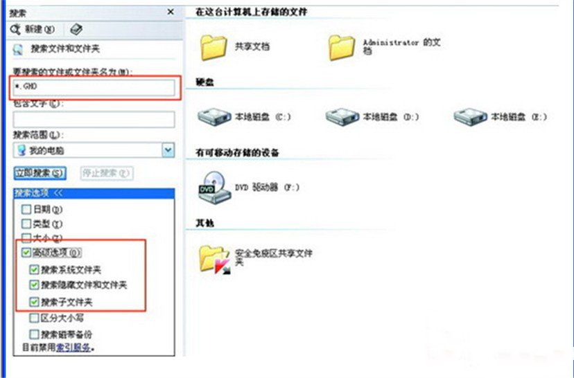 搜索“隐藏的文件和文件夹”回车,隐藏文件夹中的GHO文件。