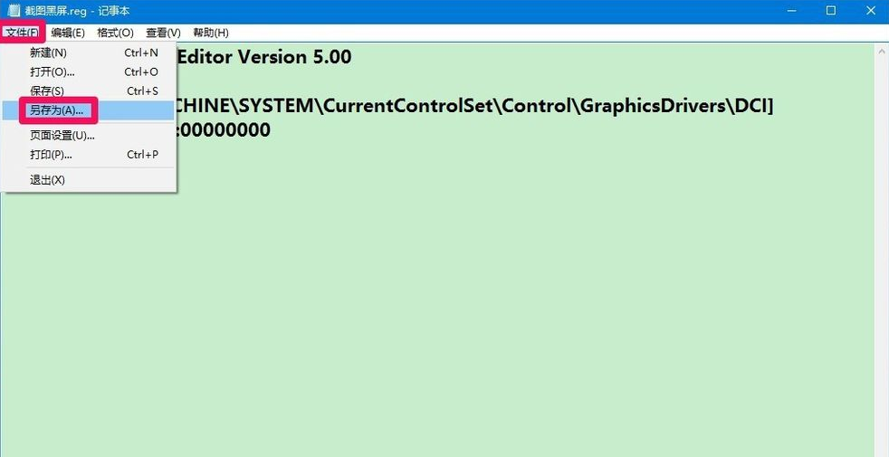 3、在另存为窗口,点击【桌面】,在文件名(N)栏中输入:截图黑屏.reg,再点击:保存。