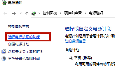 3、选择左边“选择电源按钮的功能”;
