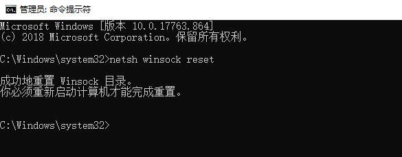 2.在打开的窗口中输入"netsh winsock reset"后按下回车;