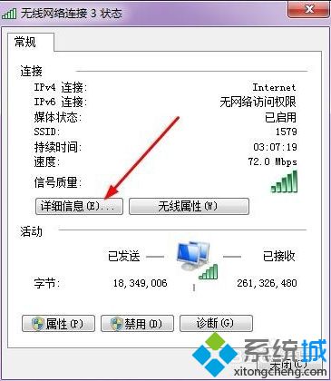 4、这个时候会弹出我们网络的连接状态,我们点击详细信息。