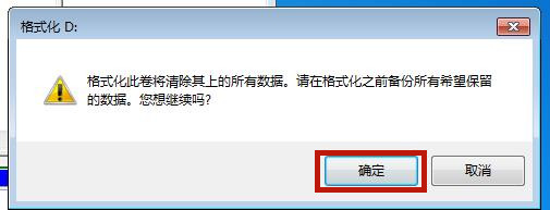4.弹出的提示直接点击“确定”,此时系统就会自动进行格式化硬盘流程了。