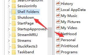 6、接着回到注册表编辑器,用同样的方法打开“user shell folders”下的“personal”文件。