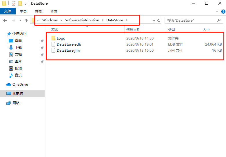 3、在C盘中,依次打开到:Windows - SoftwareDistribution,删除DataStore里面所有文件(更新失败的补丁文件)。