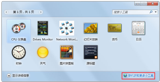 5、如果您没有找到要添加的小工具,可以单击该链接以在线获取更多小工具以下载小工具。