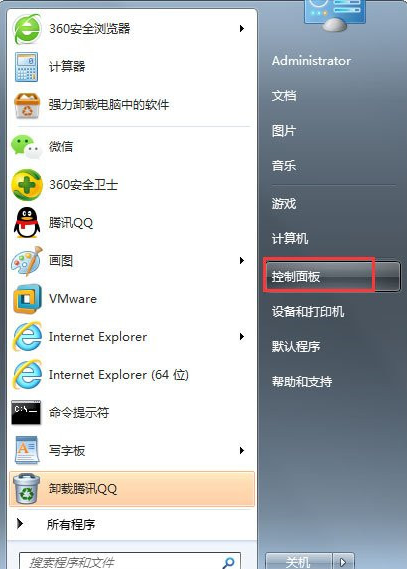 1、单击左下角的“开始”按钮进入“开始”菜单,找到“控制面板”并单击“控制面板”。