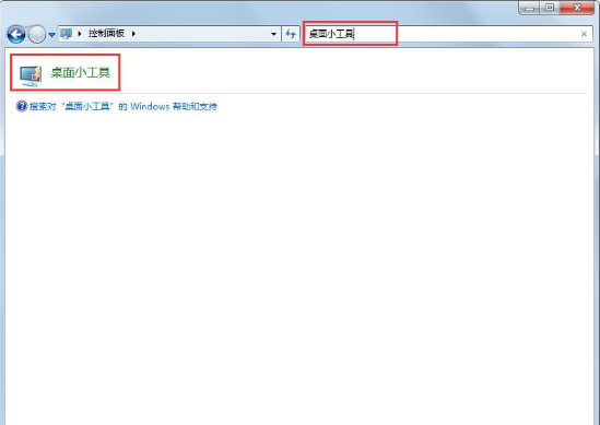 2、在控制面板中,搜索桌面小工具,您可以找到桌面小工具的按钮;