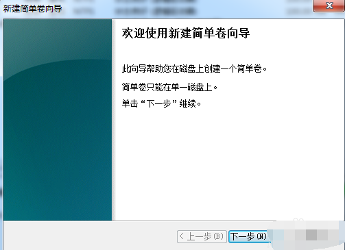 7、弹出新建卷向导,点击下一步。