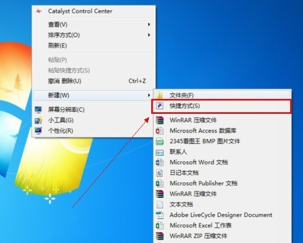 1、在桌面的空白处点击右键【新建】,选择【快捷方式】。