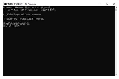 3、输入完以上步骤的指令后回车,它就会开始检测和修复了,当然你也可以应用“Dism/Online/Cleanup-Image/CheckHealth”和“Dism/Online/Cleanup-Image/RestoreHealth”修复windows组件,也是可以的。