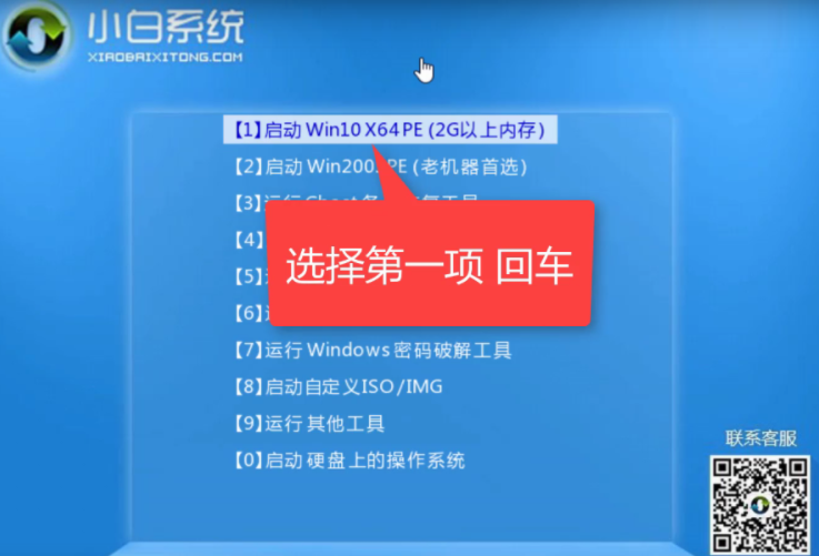 3、进入PE选择界面,使用上下方向键,选择第一项,点击回车。