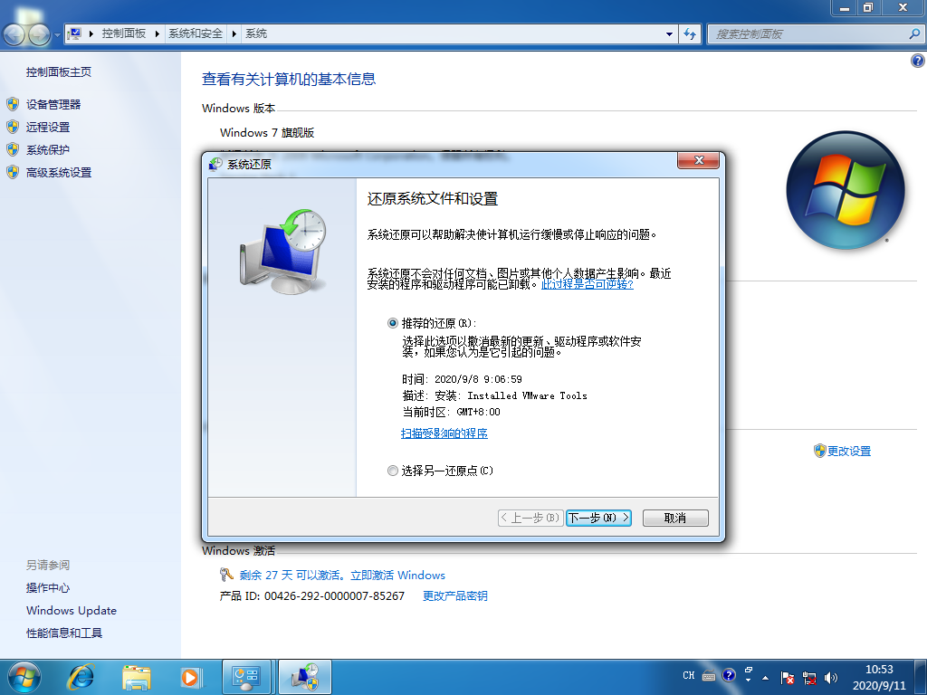 3.再点击系统还原,在弹出的窗口中点击下一步即可,点击完成。