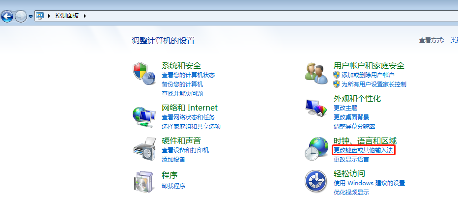3、打开之后我们找到时钟语言和区域里的更改键盘和输入法选项打开。