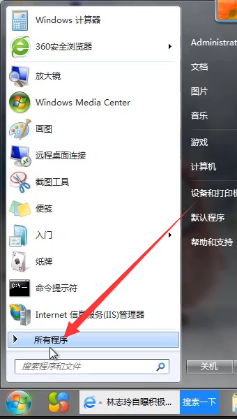 1、点击开始后,点击所有程序。