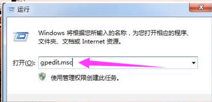 2. Win + R弹出运行窗口,并输入命令“ gpedit.msc”。