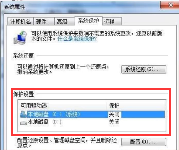 1.右键单击计算机图标,选择属性,然后单击“高级系统选项”,切换到系统保护,然后关闭所有可用的驱动器。