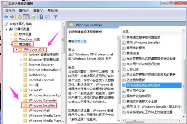 3.在图中找到“关闭创建系统还原检查点”,然后双击以进入。