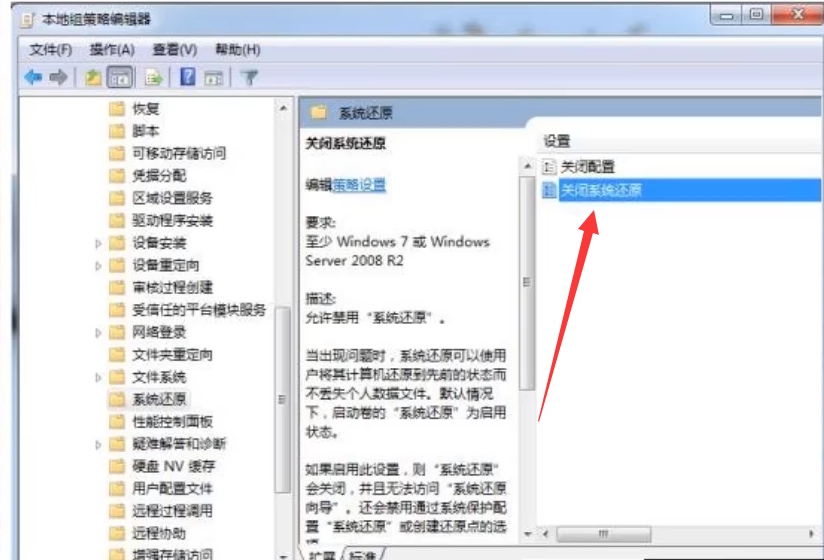 4.启用“关闭系统还原”。