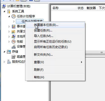 2、右击“任务计划程序库”,点击“创建基本任务”。