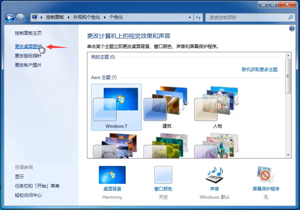 3、然后点击左侧的“更改桌面图标”。