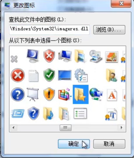 5、从列表中选择需要更改的图标,选择之后点击确定即可。