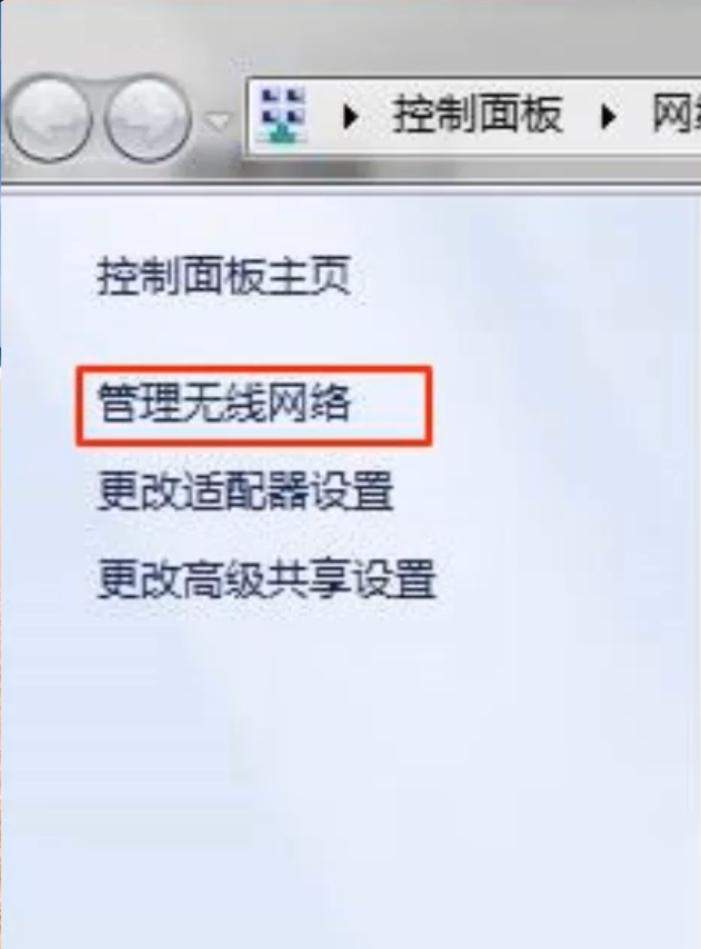 3、点击窗口左侧的“管理无线网络”。