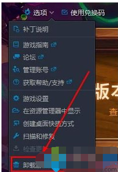 2、点开选项按钮,在弹出的界面中,点击最下的卸载游戏按钮。