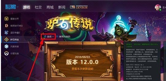 1、我们首先打开暴雪专属的客户端页面,从左边选择你要卸载的游戏,除了卸载魔兽世界,其它游戏也是一样的,随后点击红框标注的选项按钮。