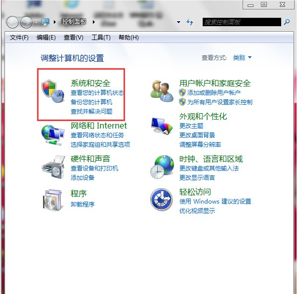 2、点击“控制面板”中的“系统和安全”。