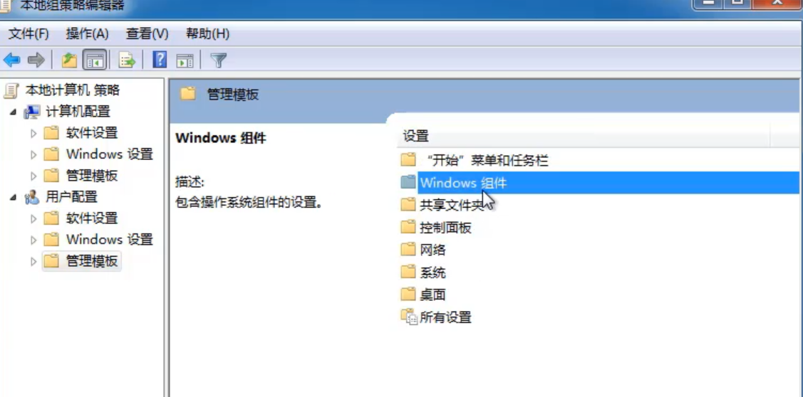 3.接着再点击管理模块点击windows组件,双击windows资源管理器。