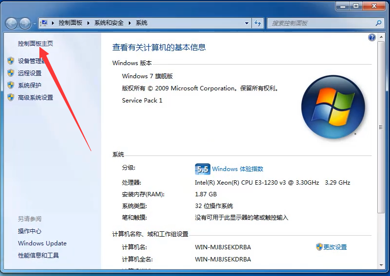 2、点击控制面板主页。