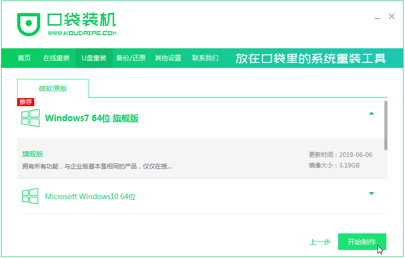 4、选择win7 64位系统,点击开始制作。
