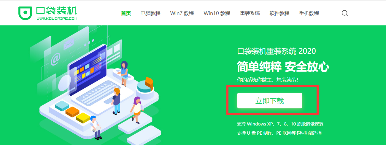 1、首先在电脑上打开【口袋PE官网】,点击下载口袋装机工具。