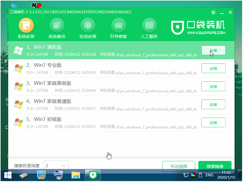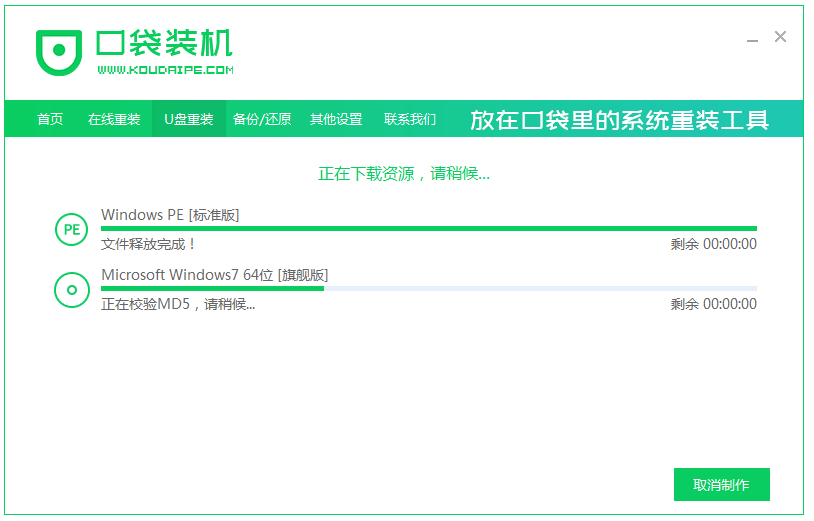 5、等待口袋装机工具下载系统镜像。