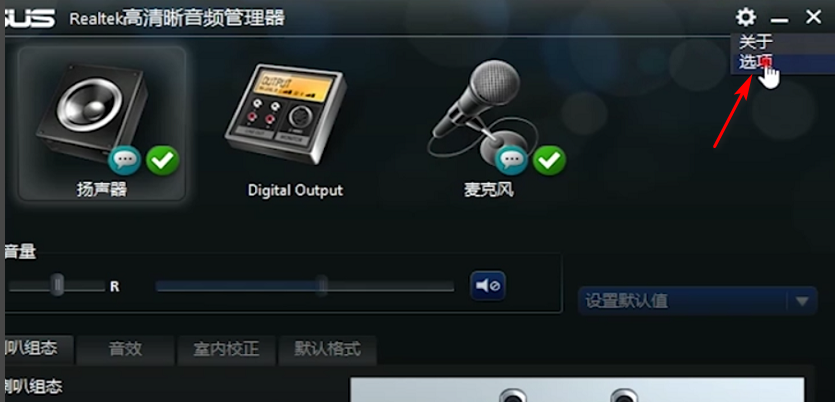 1、首先查看音箱连接问题,线有没有松动,可以换到电脑后面的音频接口尝试看看有没有声音,或者排查一下音箱有没有损坏,有其他音箱的话可以替换一下,看是不是音箱坏了。