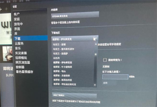 另外一种可行的方法是玩家打开Steam设置,在“下载”一栏中将下载地区切换为俄罗斯也能改善更新卡顿的问题。