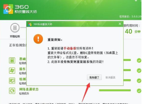 5、360一键重装系统使用后没法回复到原先的系统,操作前一定要谨慎。