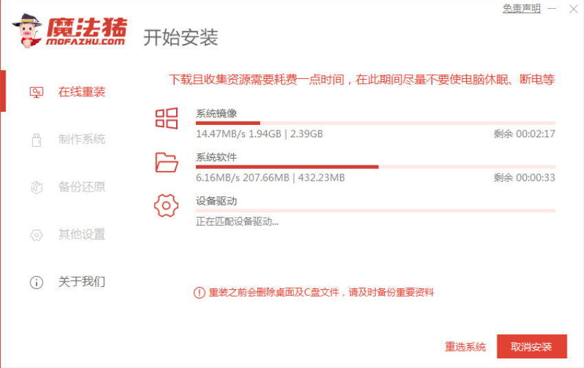 2.开始下载镜像文件和驱动,耐心等待即可。