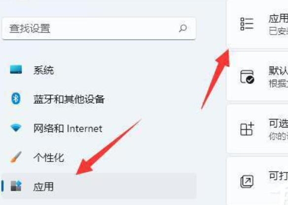2、在设置界面,点击左栏的应用,然后打开“应用和功能”。