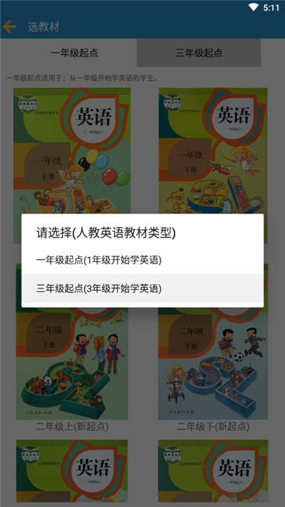 小学英语下载是一款小学实时同步教材学习软件,在这里能够小学生选择不同年级人教版英语教材内容,随时学习教材知识内容,哪里不会点哪里,汇集了课文、单词和对话等内容,从多方面学习,帮助学生打好英语基础,需要的伙伴,赶紧来下载使用吧!