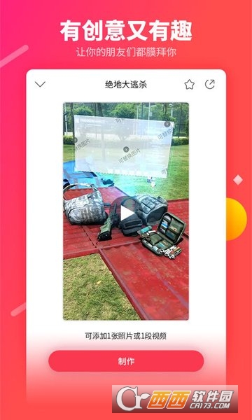 逗拍下载是一款全新的让用户轻松制作搞笑短视频的APP,逗拍主打“有趣、简单”,提供各种好玩的场景,用户可以上传个人头像制作各种好玩视频,让自己成为场景中的一角,可以是祝福、恶搞、调侃等各种视频,还能够整蛊一下朋友!用视频逗乐你的朋友圈,一切都只为逗你一乐!另外,用户还可以与好友一起进行角色扮演.所以,在这样的产品中,用户就是最大的生产力,相互恶搞、吐槽.公测期间产品自传播能力比较强,这次是对外正式发布,功能也尽量做到简单极致,让用户首先体验最棒的乐趣,后续版本将从功能到内容不断迭代,持续创新,以改善产品功能和视频内容单一.